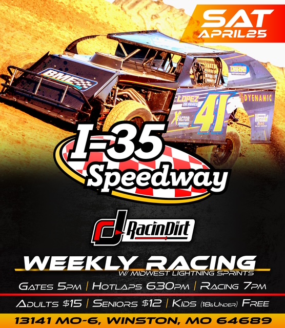 I-35 Speedway April 11 PreviewAre you ready for racing! Let’s do it this Saturday, April 11, 2026, at the renowned I-35 Speedway. It will be Casey’s and CR Seeds and Service Night at the Races. Hear the thunder of the roaring engines and feel the power of the classes through your seat. Racecars in competition: USRA Modifieds, USRA Stock Cars, USRA B Mods, E Mods, USRA Hobb …