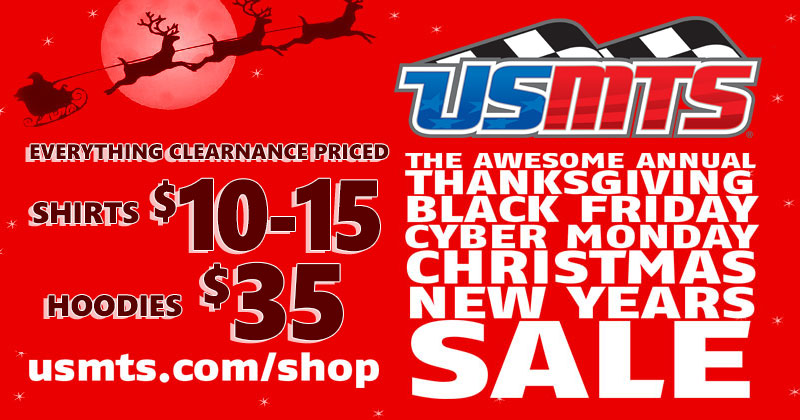 The USMTS Awesome Annual Thanksgiving Black Friday Cyber Monday Christmas & New Years Sale is on!Looking for that perfect surprise gift for the race fan in your life?