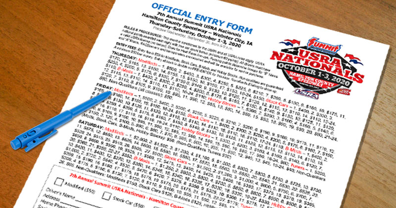 2020 Summit USRA Nationals Entry FormHere's your entry form for the 7th Annual Summit USRA Nationals powered by MyRacepass set for Thursday-Saturday, October 1-3, at the Hamilton County Speedway in Webster City, Iowa. …