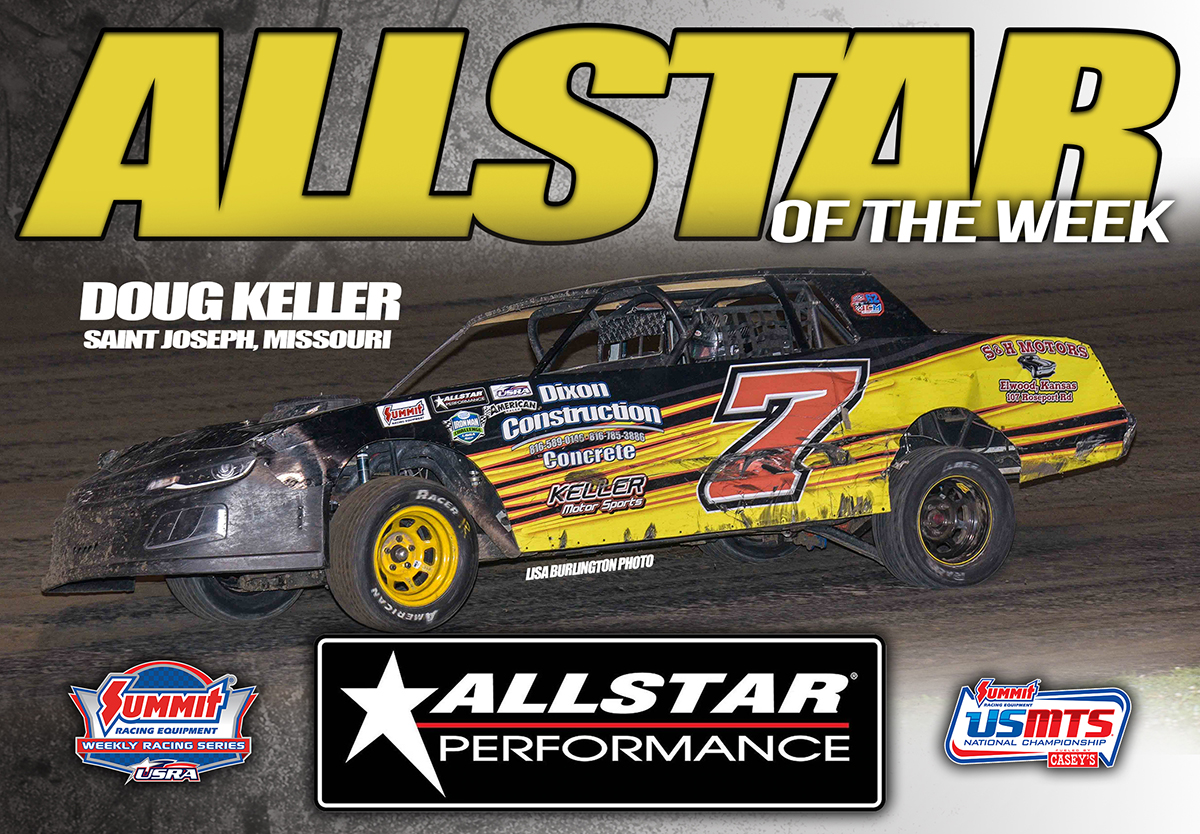 Allstar Performance Allstar of the Week: Doug KellerAmerican Racer USRA Stock Car competitor Doug Keller of Easton, Mo., is this week’s Allstar Performance Allstar of the Week. Keller picked up two key wins at the Dallas County Speedway on Thursday and I-35 Speedway on Saturday.