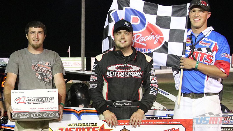 Sanders sails to USMTS victory at I-35 SpeedwayRodney Sanders rolled to his series-best myseventh win of the season Wednesday as the I-35 Speedway hosted the 10th Annual USMTS Missouri Meltdown presented by MyRacePass.com.