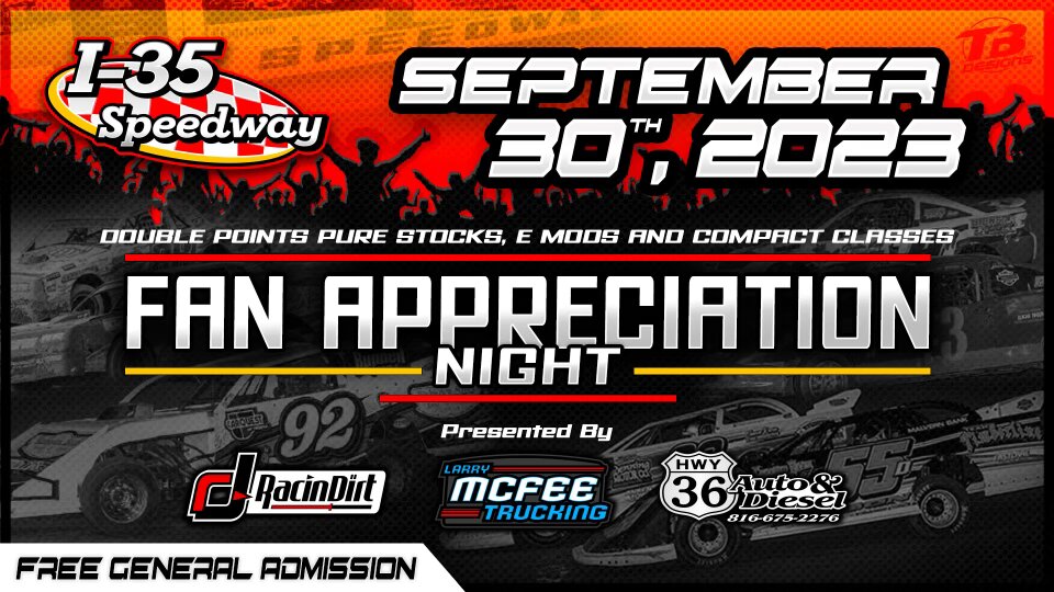 Saturday is I-35 Speedway Championship NightThis is it... I-35 Speedway's 2024 Molle Auto Group Season Finale Championship Night is this Saturday, October 26. It's your your last chance this year to catch the stars and cars of I-35 Speedway. Your last chance to wave to your favorite car, color …