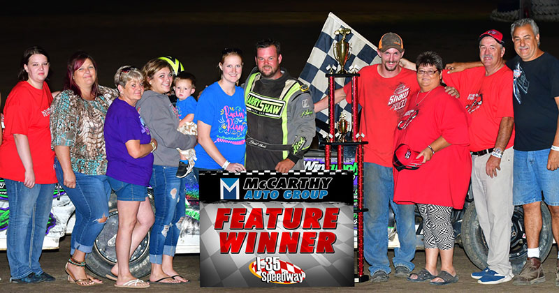Twenty-three B-Mods took to I-35 Speedway for a 22-lap feature, and Daniel Harris led every one (the No. 22 is the number Wilson won the championship with). Harris navigated seven cautions and put together perfect restart after perfect restart, holding off challenges from Lonnie Hibner, Nic Hanes and Doug Keller to pick up his third win at I-35 this season.