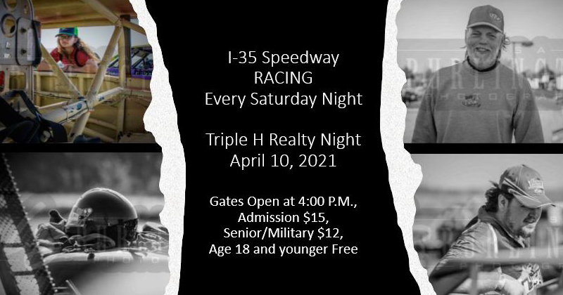 This Saturday, April 10, is Triple H Realty Night. Racing starts at 7 p.m. Pit gates and grandstands open at 4. Pill draw closes and the drivers meeting is at 6 with hot laps immediately after.