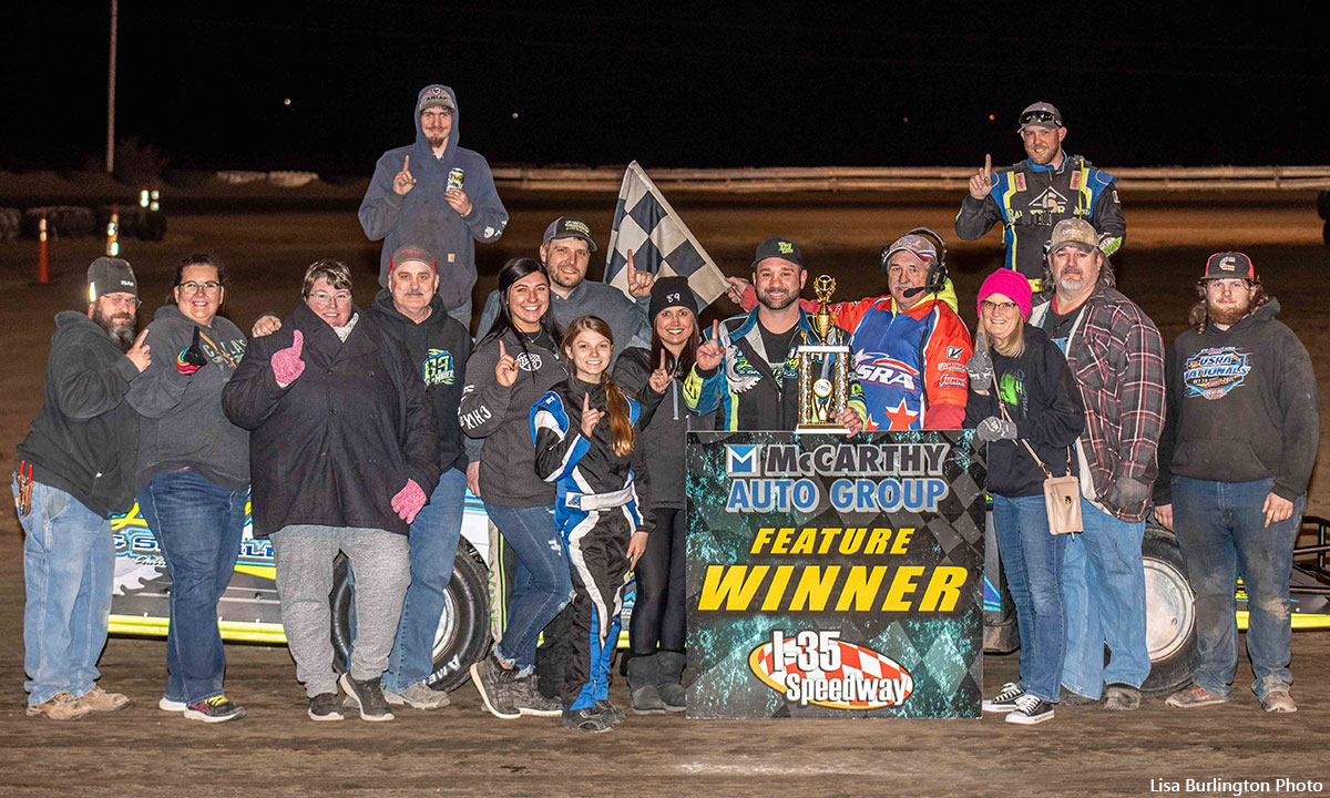 Tyler Hibner picked up where he left off in 2022 as he celebrated another win at I-35 Speedway. Houston Johnson made a last-lap pass on Ethan Braaksma to finish second while Braaksma finished third in his first trip to I-35 Speedway.