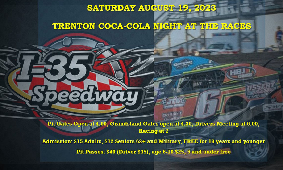 Exciting edge of your seat racing continues this Saturday, Aug. 19, at the legendary I-35 Speedway. It will be Trenton Coca-Cola Night.