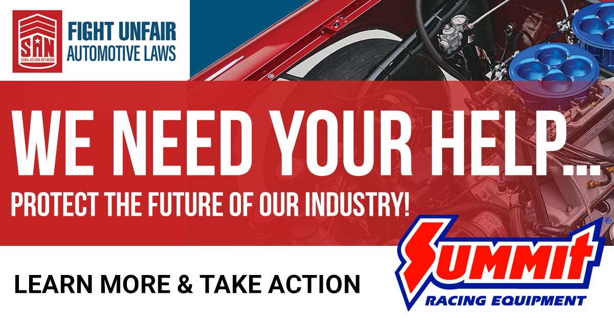 Go to SummitRacing.com/legislative-alerts for details and links to SEMA Action Network’s one-click email campaigns. Join us in asking our representatives to support these important issues today!
